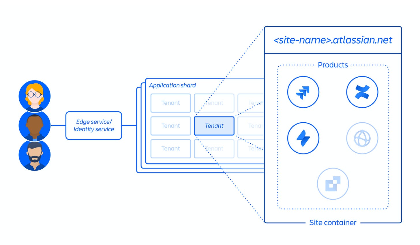 Atlassian mitigates this with the Tenant Context Service (TCS).